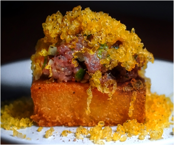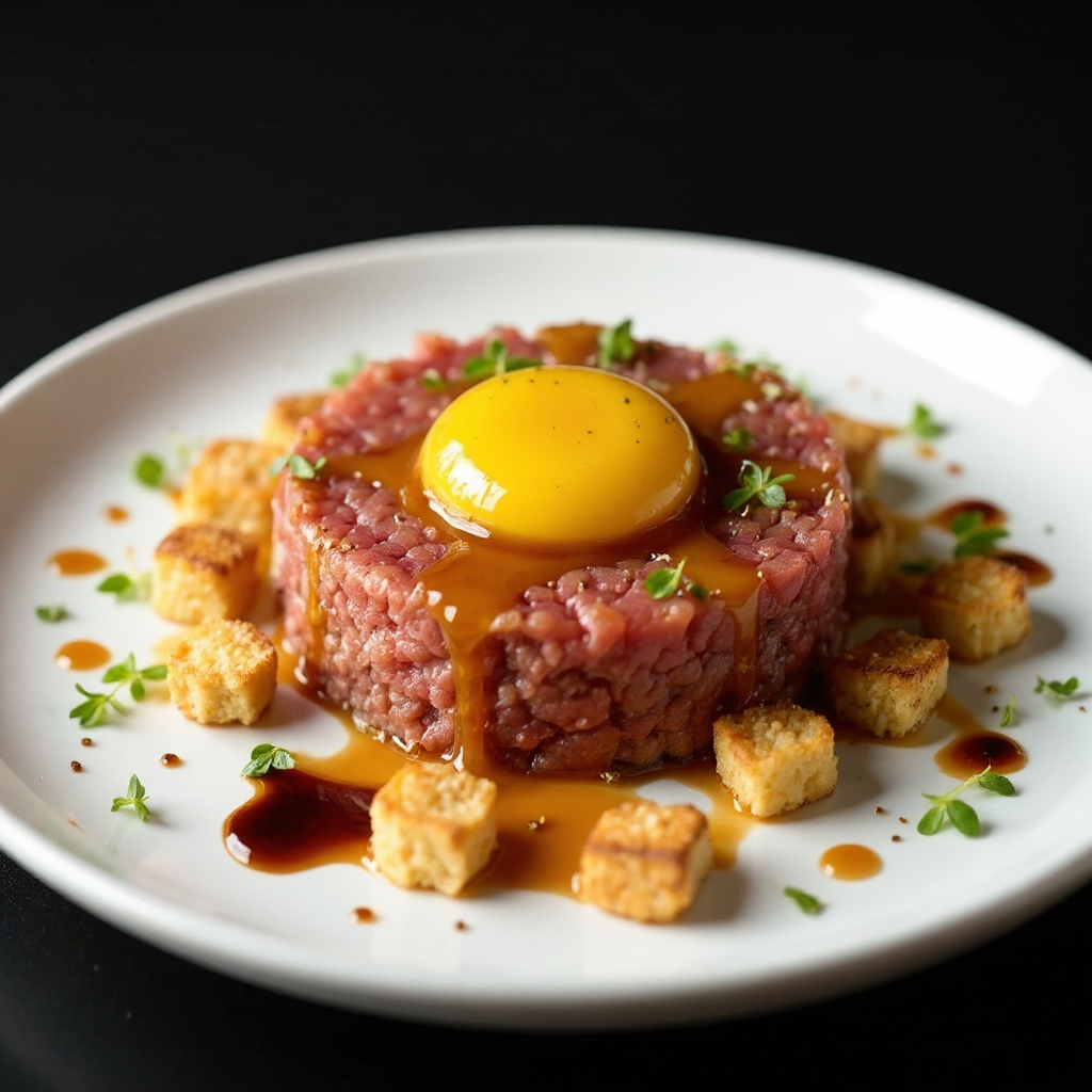 Beef Tartare, Cured Egg Yolk, Croutons, Quail Egg