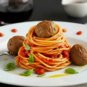 Arrabbiata Sauce, Confit Garlic Oil, Corned Beef Meatballs
